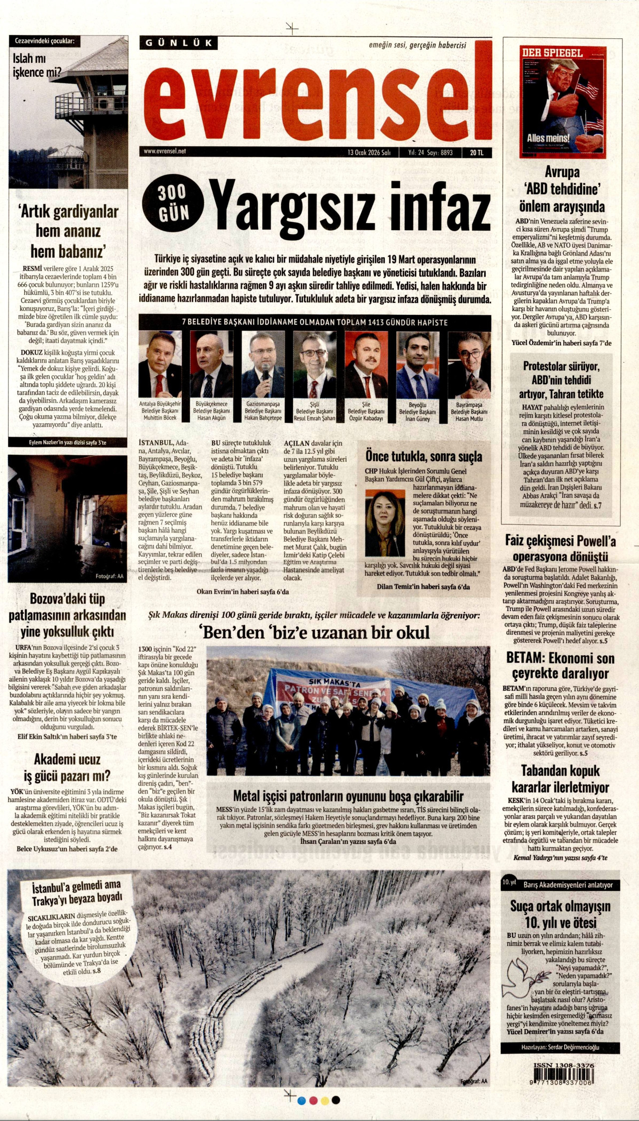 EVRENSEL Gazetesi 13 Ocak 2026, Salı Günü Manşeti