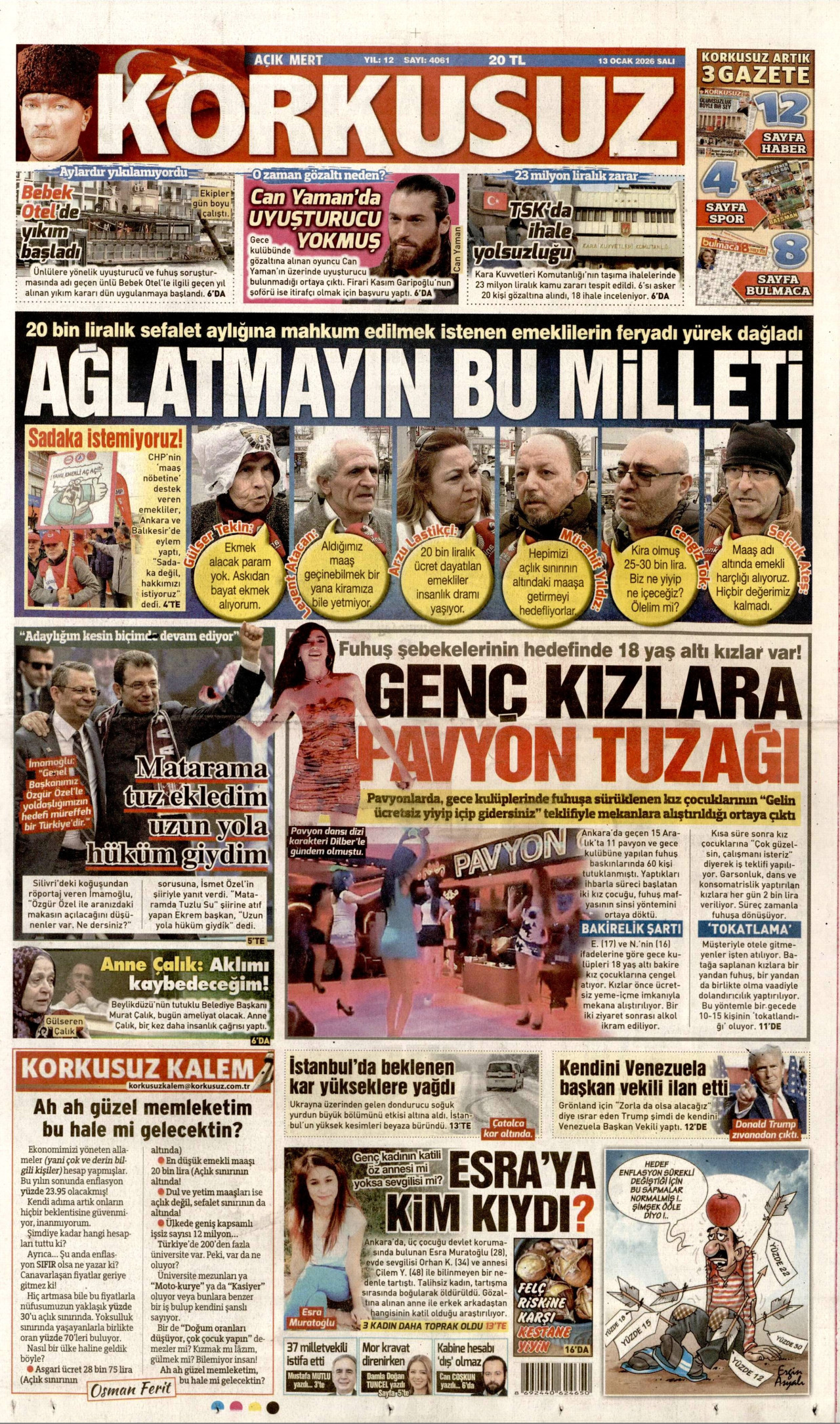 KORKUSUZ Gazetesi 13 Ocak 2026, Salı Günü Manşeti