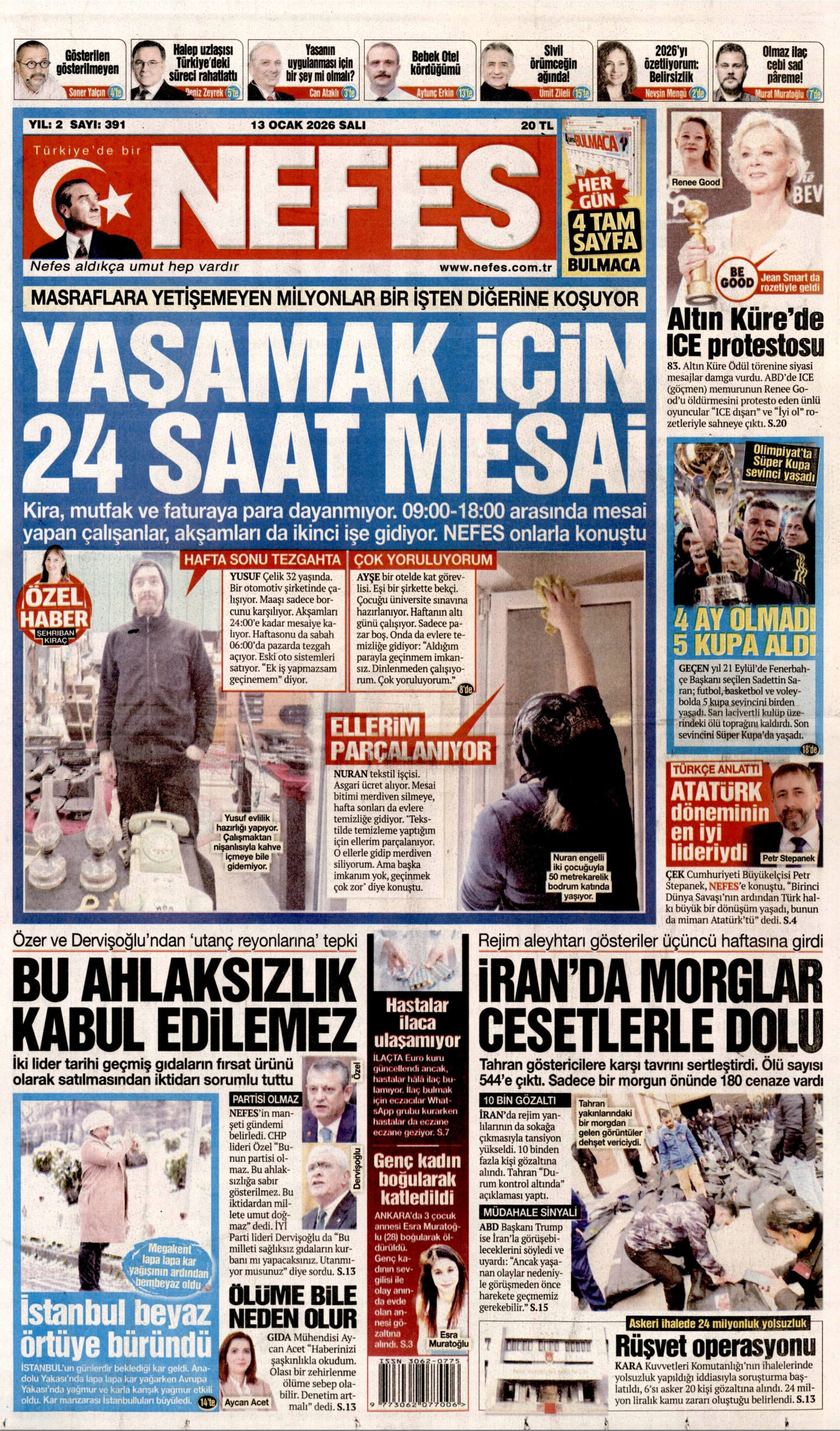NEFES Gazetesi 13 Ocak 2026, Salı Günü Manşeti