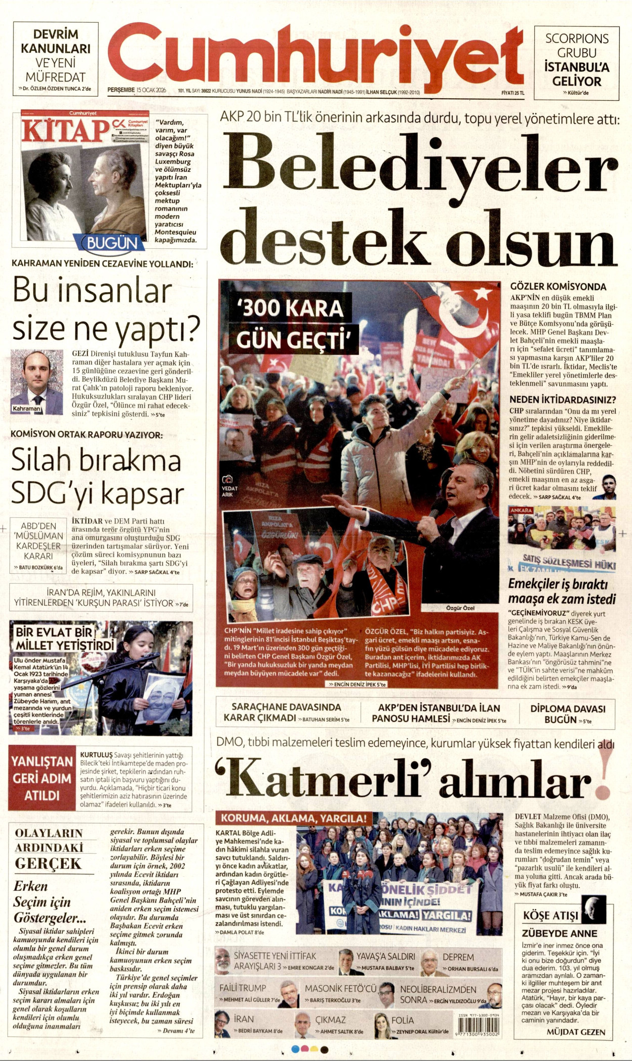 CUMHURİYET Gazetesi 15 Ocak 2026, Perşembe Günü Manşeti