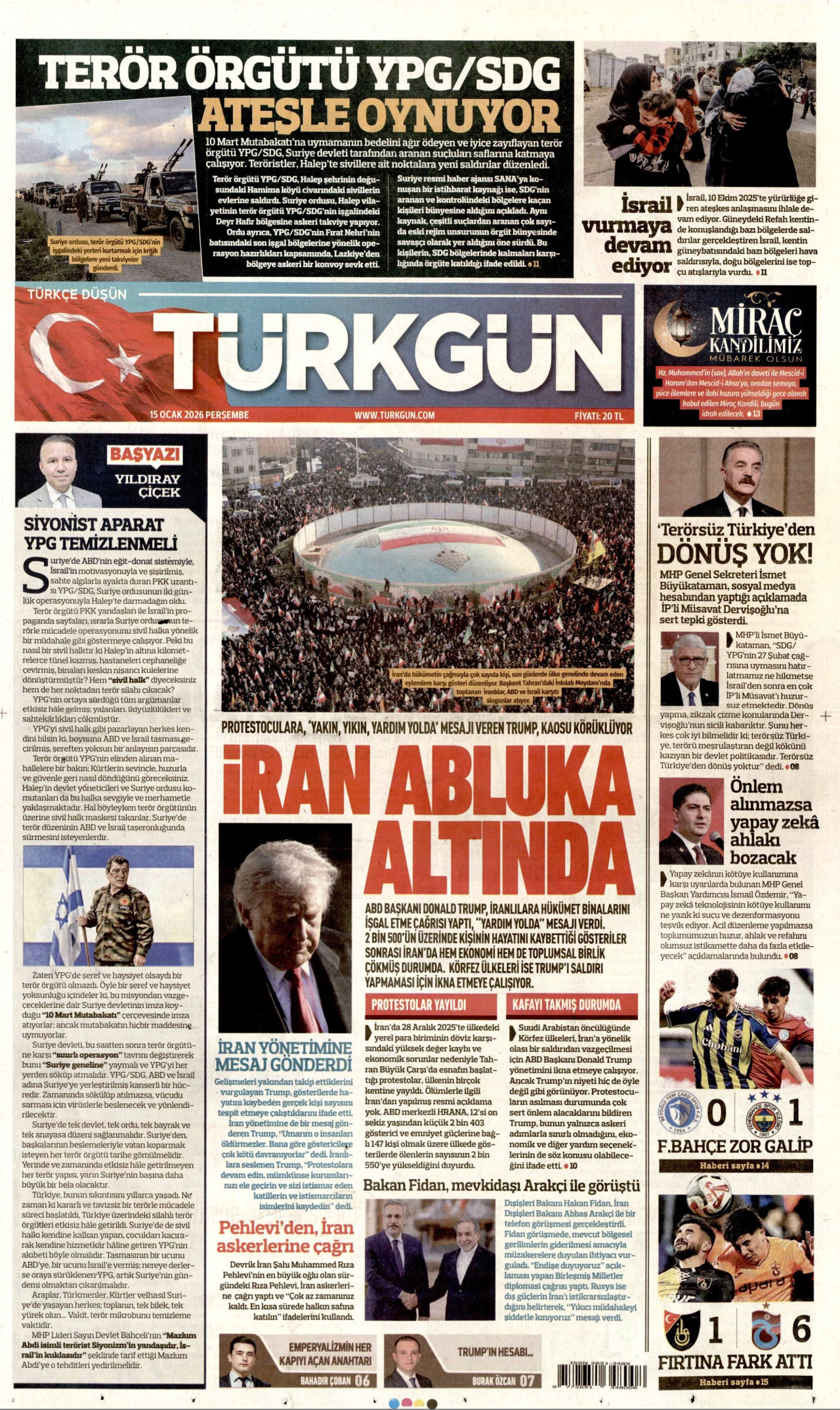 TÜRKGÜN Gazetesi 15 Ocak 2026, Perşembe Günü Manşeti