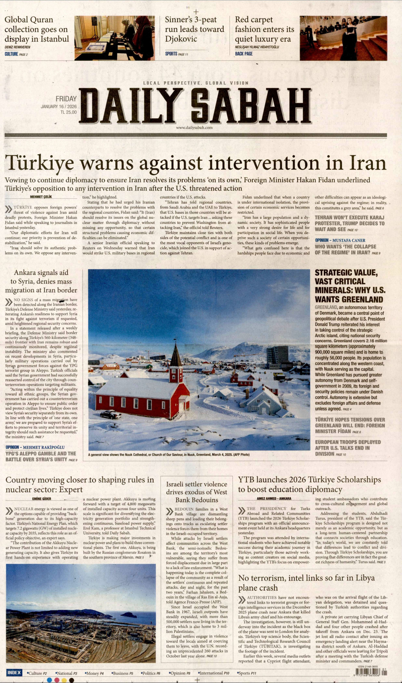 DAİLY SABAH Gazetesi 16 Ocak 2026, Cuma Günü Manşeti