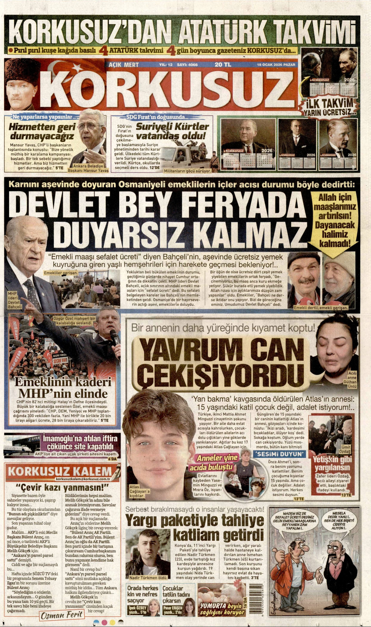 KORKUSUZ Gazetesi 18 Ocak 2026, Pazar Günü Manşeti