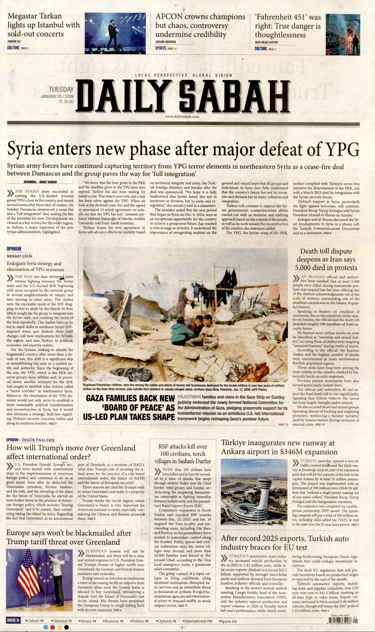 DAİLY SABAH Gazetesi 20 Ocak 2026, Salı Günü Manşeti