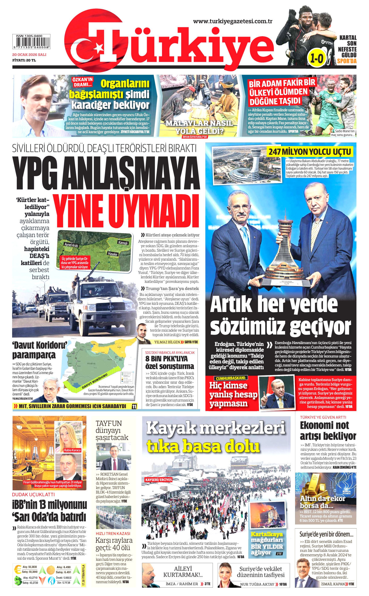 TÜRKİYE GAZETESİ Gazetesi 20 Ocak 2026, Salı Günü Manşeti