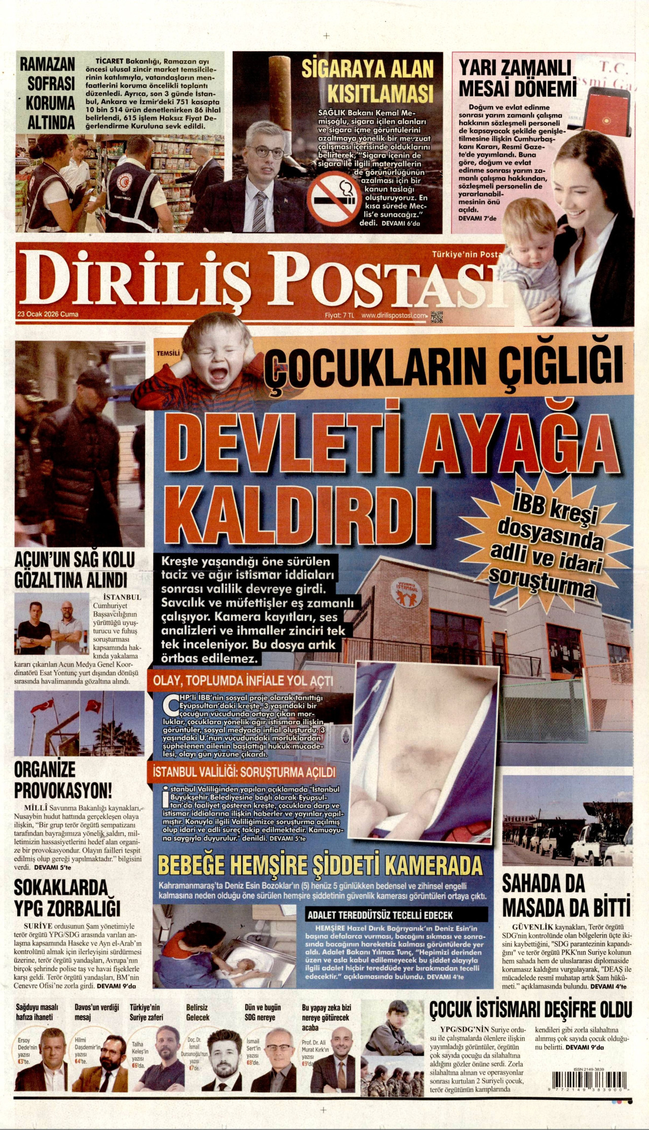 DİRİLİŞ POSTASI Gazetesi 23 Ocak 2026, Cuma Günü Manşeti