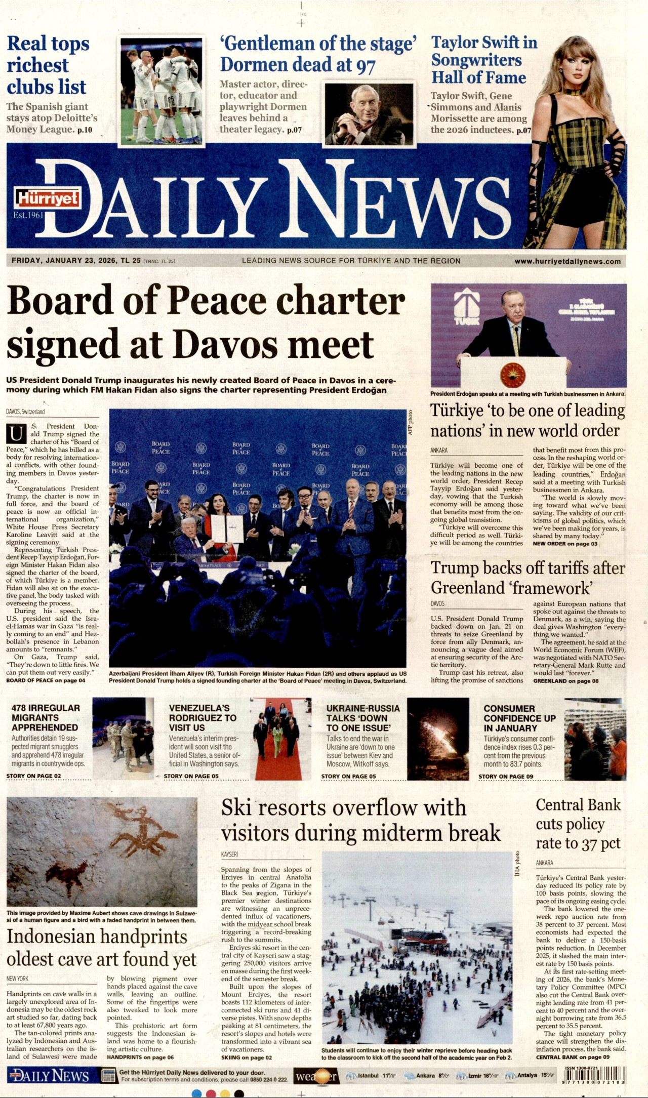 HÜRRİYET DAİLY NEWS Gazetesi 23 Ocak 2026, Cuma Günü Manşeti