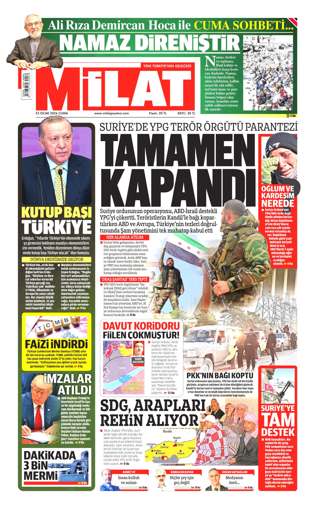 MİLAT Gazetesi 23 Ocak 2026, Cuma Günü Manşeti
